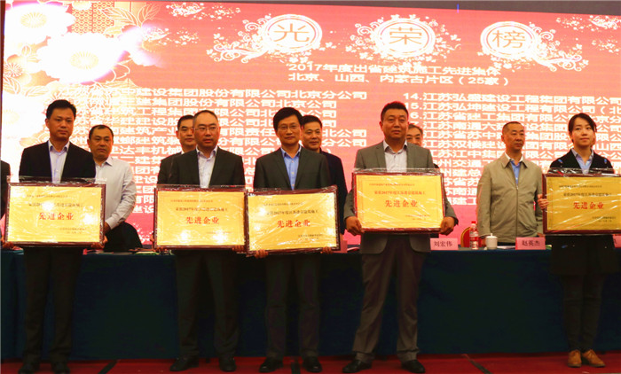 本次會議對2017年度江蘇出省建筑施工先進企業和先進個人等進行了表彰。會上,江蘇華建北京公司被省住建廳表彰為“江蘇出省建筑施工先進企業”,北京公司總經理呂進被評為2017年度出省建筑施工先進個人,北京公司機關黨支部被評為“先進黨支部”,陳迎秋同志被表彰為“優秀黨務工作者”,姜偉等6名同志被表彰為“優秀共產黨員”。北京公司整體獲獎項數量多年來一直領跑江蘇省進京施工企業。