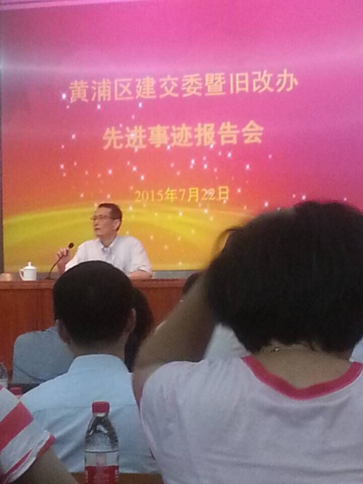 日前,上海區(qū)域公司外灘源項目部現(xiàn)場施工負(fù)責(zé)人楊連山同志應(yīng)邀,在上海市黃浦區(qū)建設(shè)交通委暨舊改辦開展的“三嚴(yán)三實”專題教育系列活動中,做了專題為《愛崗敬業(yè),服務(wù)社會,體現(xiàn)自身價值》的先進(jìn)事跡報告。黃浦區(qū)建交委、舊改系統(tǒng)及來自建設(shè)工地的工人黨員180余人參加了報告會,邀請全國勞動模范張國樑、上海市先進(jìn)工作者蔣昭瑜、上海市先進(jìn)農(nóng)民工楊連山等三位同志做先進(jìn)事跡報告,楊連山同志的事跡報告打動了與會人員的心,引起了了大家的一致共鳴。