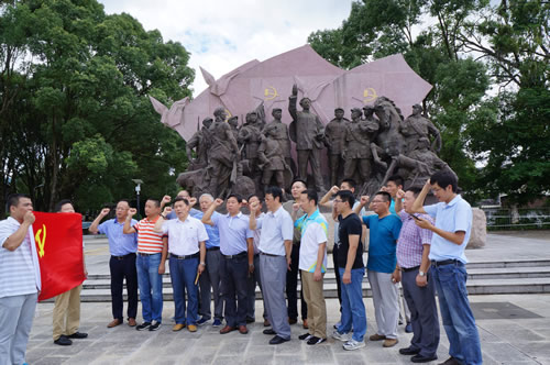 上海分公司黨總支組織開展“紅色之旅”教育 時(shí)間:2016-08-16 4135 8月12日,上海分公司黨總支組織部分黨員干部和入黨積極分子共18人,赴愛國主義教育基地福建古田開展“促兩學(xué)一做,走紅色之旅”教育活動,在“主席園”向毛主席像敬獻(xiàn)花籃,在“豐碑軍魂”雕像前面對黨旗重溫入黨誓詞,還仔細(xì)參觀古田會議地址和紀(jì)念館,回顧緬懷了老一輩無產(chǎn)階級革命家的不朽事跡。大家牢記“古田會議永放光芒”精神,紛紛表示:“不忘初心,繼續(xù)前行”。