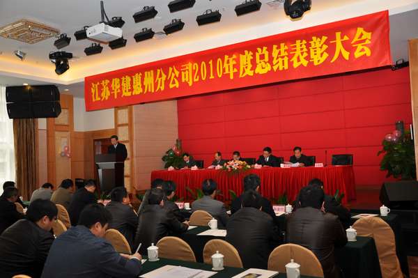 大會由惠州公司副總經理嚴龍山同志主持,惠州公司總經理華恒榮同志在會上作了題為《保穩定促規范,強化管理謀發展;勇開拓重創新,奮勇進取譜新篇》的工作報告。報告對惠州公司2010年各項工作和成果進行了客觀、全面、深刻的總結與回顧。報告認為,去年以來,面對深刻變化的國際國內環境,競爭激烈的建筑市場,在公司總部的堅強領導下,惠州公司堅持“保穩定、防風險、創品牌、促發展”的工作方針,全體員工團結一心,克難求進,順利完成了總部年初下達的任務指標,精神文明建設再結碩果;工程創優技術進步取得新突破;各工程處(項目部)呈現頗多亮點。盤點2010年,是濃墨重彩的一年,更是惠州公司發展史上不平凡的一年,全年著力于“穩”,彰顯出“新”,構建 成“和”,在經營開拓、質量安全、風險管控、內部管理等各個方面都取得了實實在在的工作業績。報告還對工作中存在的問題和困難逐一梳理,并按照江蘇華建董事會五屆一次、二次會議精神,結合惠州實際,對2011年度工作提出了工作意見,要求惠州公司上下繼續發揚“敢拼、敢干、敢冒”的創業精神,努力光大經營特色,繼往開來,不斷進取,圍繞“平穩、規范、創新、拓展”的工作方針開展工作:繼續加強經營開拓力度,提高經營實效,確保規模增長;繼續加強現場施工管理,提升管理水平,推動創新創優;繼續加強風險監管控制,細化財務工作,保持平穩發展;繼續加強內部管理規范,探尋共同價值,打造和諧企業。