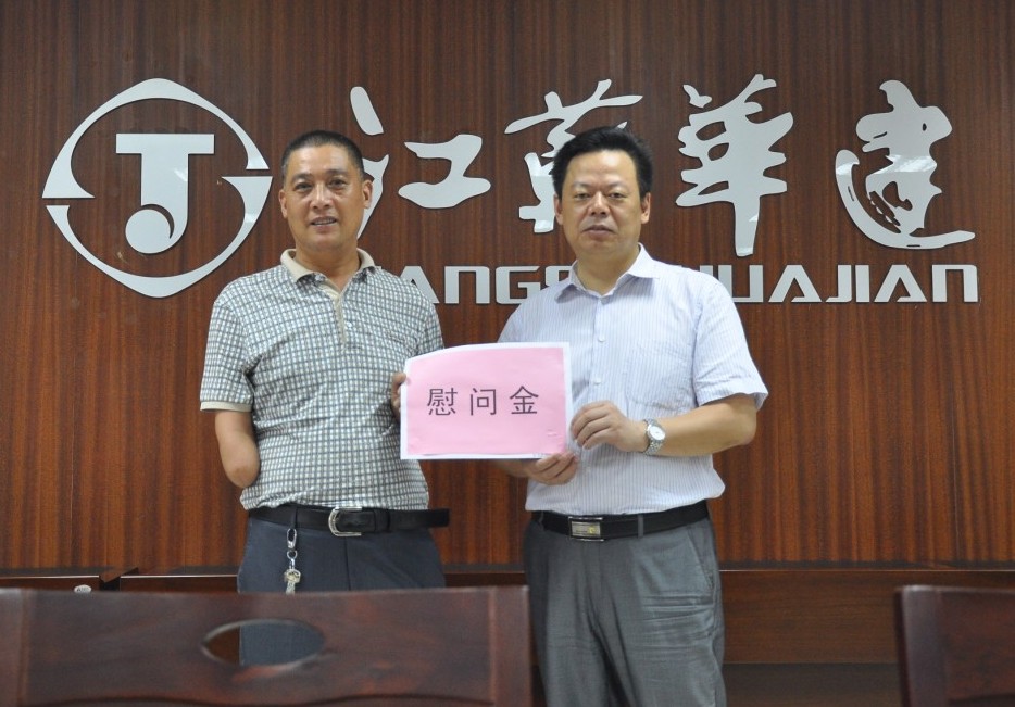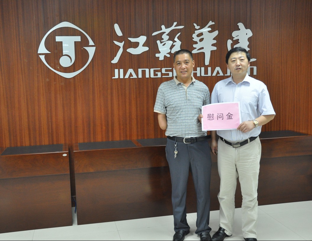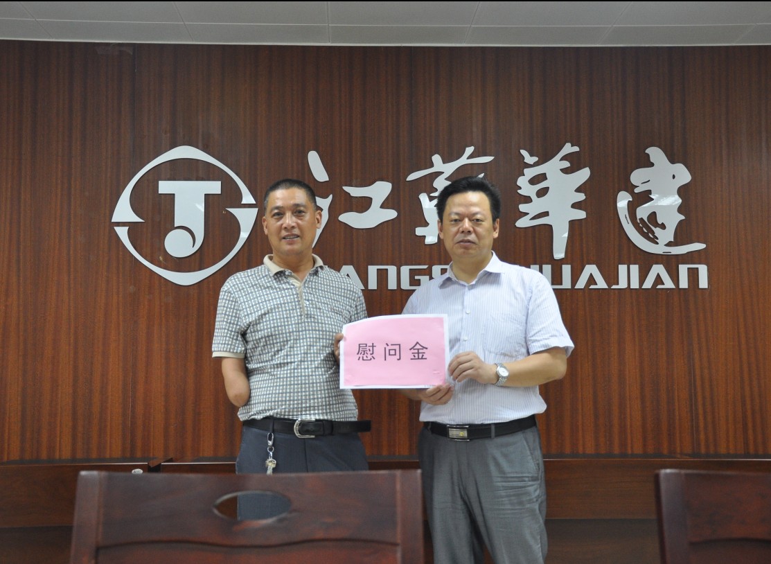 惠州區域公司慰問傷殘員工 時間:2013-08-06 3806 夏日炎炎,酷暑難耐。江蘇華建副總經理、惠州分公司總經理華恒榮率分公司工會親切慰問了在惠州分公司第九工程處工作的傷殘員工居家應(居家應90年代在寶應工作期間,不慎失去了右膀,被定為三級傷殘)。慰問中,華總詳細了解他的生活、工作情況,并向他發放慰問金,同時要求九處在工作、生活上給予一定的關心。居家應感謝組織對他的關心,表示身殘志不殘,更加積極努力的工作,不辜負組織的期望。惠州分公司總會計師高正金,分公司工會主席王健陪同慰問。