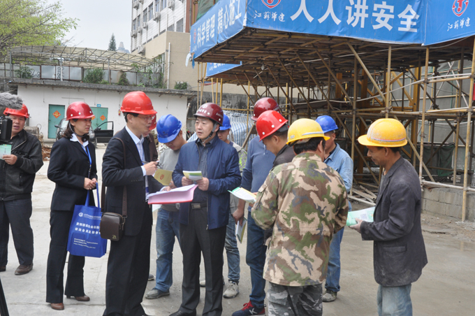 3月20日,惠州市社保局組織工作人員深入公司承建的寶晟城項(xiàng)目施工現(xiàn)場,面對面為建筑工人宣傳工傷保險政策。此次活動由市社保局副局長黃漢榜帶隊(duì)。