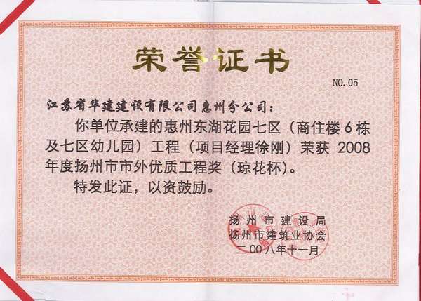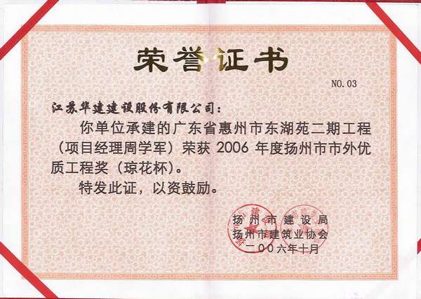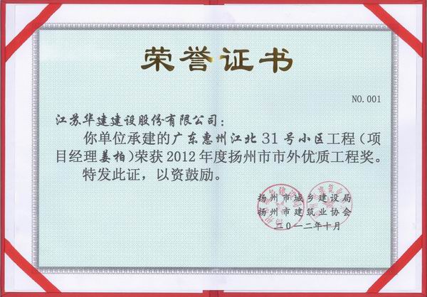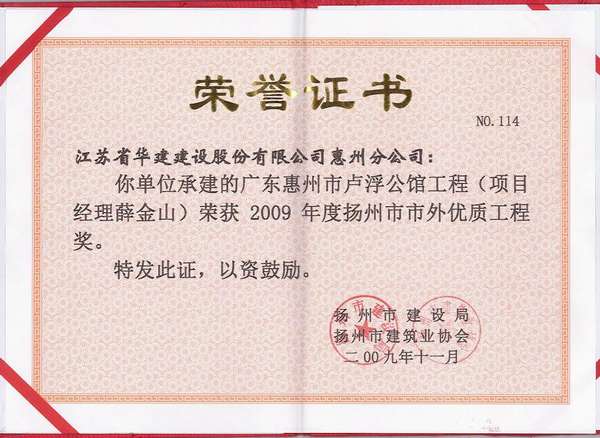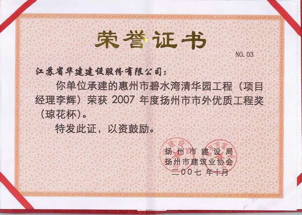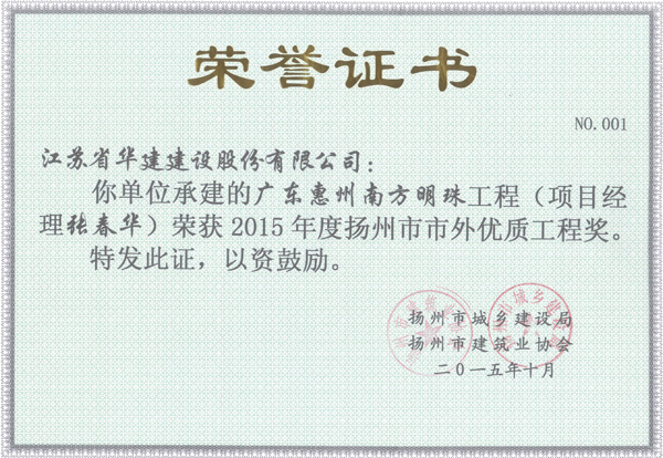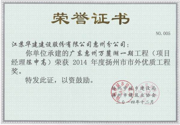 2015年揚(yáng)州市市外優(yōu)質(zhì)工程獎(jiǎng)