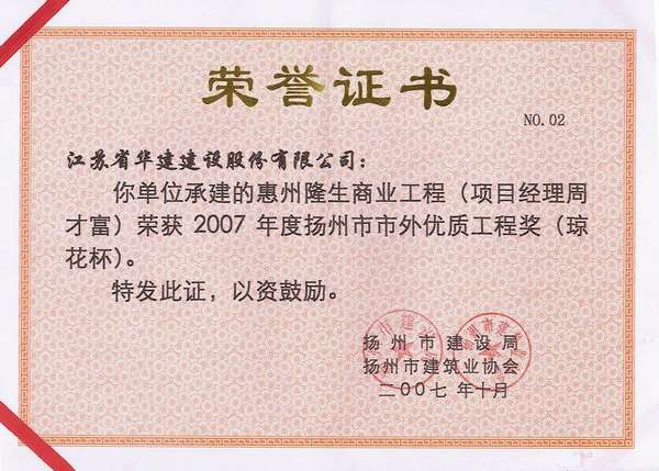 2007年度市外瓊花杯-隆生商業(yè)大廈