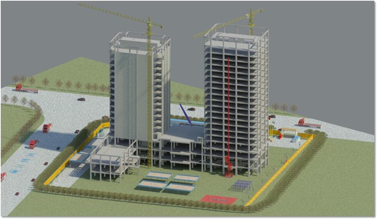 橫琴隆義廣場項目位于珠海橫琴自貿(mào)區(qū),工程造價為16000萬元,建筑面積約60000平方米,由1棟17層和1棟20層的塔樓組成,最大高度為85.8米,合同工期730天。建成之后將成為橫琴島上的高檔酒店和寫字樓。該工程通過運(yùn)用BIM技術(shù),建立項目BIM設(shè)計模型,完成了多專業(yè)碰撞檢查、模型二次深化設(shè)計、凈高分析等工作。此外,公司在該項目施工中還基于高精度BIM施工模型做到了施工臨時場地布置、BIM樣板引路、機(jī)電管線綜合優(yōu)化、鋁合金模板預(yù)拼裝、腳手架系統(tǒng)深化設(shè)計、動態(tài)可視化交底、施工進(jìn)度計劃及造價控制等工作的優(yōu)化管理,項目結(jié)合二維碼的協(xié)同管理云平臺,實現(xiàn)了“工廠預(yù)制加工”“掃碼組裝”“二維碼安全技術(shù)交底”“設(shè)備信息錄入”等智能化操作。