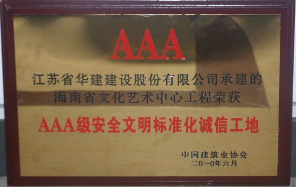 “海南省文化藝術中心”項目榮膺全國AAA級安全文明標準化誠信工地 時間:2010-07-24 5176 近日,經中國建筑業(yè)協(xié)會建筑安全分會在專家評審、組織抽查和網上公示,海南公司承建的海南省文化藝術中心工程榮膺全國“AAA級安全文明標準化誠信工地”,這是海南公司近年來首次獲得此項榮譽。 該項目自開工以來,以摘取魯班獎為最高質量目標,積極策劃,精心組織,以過程創(chuàng)精品,狠抓細部施工,各項指標始終處于受控狀態(tài),多次接受省、市領導、專家、同行的現(xiàn)場觀摩,獲得業(yè)內高度評價。