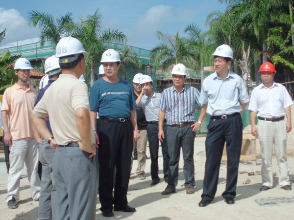 海南省委書記羅保銘等視察海南公司 時間:2012-07-08 4422 6月6日下午,海南省委書記羅保銘,省委常委、副省長、三亞市委書記姜斯憲冒著高溫來到我公司承建的鹿回頭國賓館二期擴建項目現場視察慰問,公司副總經理、海南分公司總經理王宏陪同視察。羅書記對華建的施工進度和質量表示滿意,同時要求華建把工程當做作品來抓,按時交付代表海南水平的精品項目。羅書記高度評價江蘇華建的綜合實力,認為華建在海南承建了許多重點項目,是一支有實力、善打硬仗的隊伍。姜斯憲副省長希望華建在海南繼續保持良好發展勢頭,為江蘇建筑業爭光。