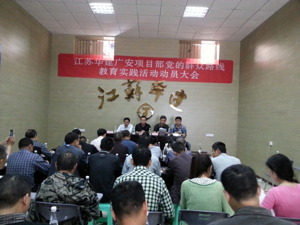 2014年4月16日,江蘇華建四川廣安官盛新區(qū)基礎(chǔ)設(shè)施暨美好家園建設(shè)項(xiàng)目部黨小組召開黨的群眾路線教育實(shí)踐活動(dòng)動(dòng)員大會(huì)。項(xiàng)目部所有黨員及各重要崗位管理人員共40余人參加會(huì)議。會(huì)議由珠海區(qū)域公司副總經(jīng)理嚴(yán)正濤主持。珠海區(qū)域公司副總經(jīng)理、總工程師周學(xué)軍在會(huì)上傳達(dá)了上級黨委關(guān)于深入開展黨的群眾路線教育實(shí)踐活動(dòng)的實(shí)施方案和總的要求。珠海區(qū)域公司辦公室相關(guān)人員向與會(huì)者詳細(xì)介紹了本次活動(dòng)所著力反對的“四風(fēng)”的主要表現(xiàn)形式。官盛鎮(zhèn)黨委副書記馬江林參加會(huì)議,并對黨小組相關(guān)活動(dòng)的開展提出了具體要求和指導(dǎo)意見。