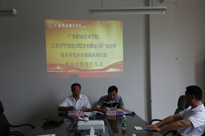 江蘇華建廣安官盛新區(qū)建設(shè)項(xiàng)目部與廣安職業(yè)技術(shù)學(xué)院舉行校企合作簽約儀式