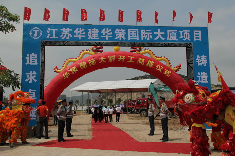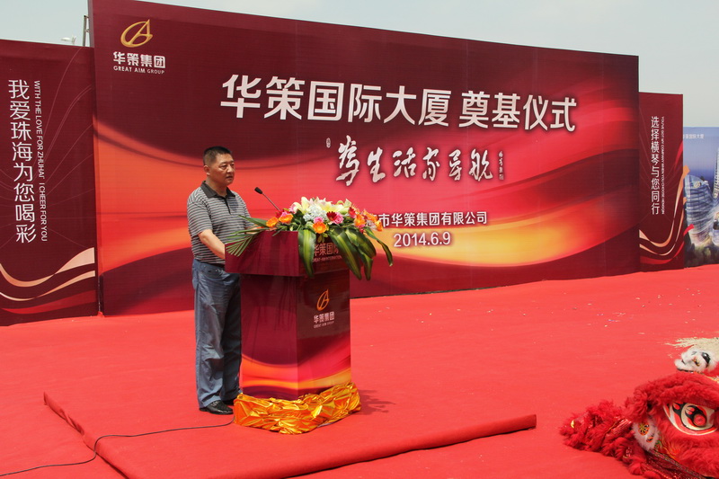 繆國樞總經理首先代表江蘇華建陸金龍董事長、宗有農總經理和公司全體員工對華策國際大廈工程順利奠基表示熱烈的祝賀,同時在致辭中表示:江蘇華建在特區成立之初就來到珠海,30年的歷程中跟隨珠海特區的發展而逐步發展、壯大。在珠海經濟特區成立30周年評選出的“十大知名建筑”中,有三項建筑是出自江蘇華建人之手,我們華建人已經與珠海這片熱土建立了深厚的感情。今天能夠承建華策國際大廈工程,參與到珠海橫琴新區的建設中來,我們既深感榮幸,也感到肩上沉甸甸的責任。華策國際大廈工程地理位置優越,建筑造型優美、華麗,極具視覺震撼力。建成后的華策國際大廈,將是橫琴新區的地標性建筑之一,必將以其鮮明的建筑特色為橫琴新區增光添彩!作為全國首批43家房屋建筑工程施工總承包特級資質企業之一,我們江蘇華建有信心、有決心、有能力順利完成本項目的施工任務,并以獲得“魯班獎”為本工程的質量目標。我們將與華策公司攜手并肩,共同努力,在政府主管部門的支持、指導下,將本工程打造成一項奪目的建筑藝術品,為珠海橫琴新區建設貢獻力量!
