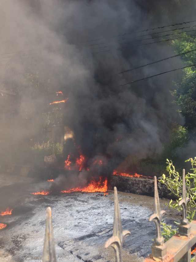 鄰居意外起火 項目部奮力撲救 時間:2014-07-30 4392 7月30日上午,珠海公司山海一品項目隔壁居民樓樓下堆放的裝修材料,因不明原因燃起大火,濃煙滾滾,火勢迅速蔓延,材料正上方的線纜部分起火。到項目現場檢查工作的公司副總經理盧達,立即組織項目部人員用工地現場滅火器等消防器材,在消防人員趕來之前撲滅大火,避免了重大財產損失。