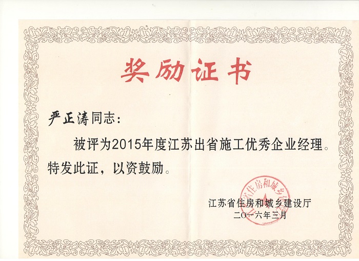 重慶分公司被表彰為“2015年度江蘇出省施工先進企業(yè)” 時間:2016-04-20 3026 近日,重慶分公司被江蘇省住房和城鄉(xiāng)建設廳表彰為“2015年度江蘇出省施工先進企業(yè)”,重慶分公司總經(jīng)理嚴正濤榮獲“2015年度江蘇出省施工優(yōu)秀企業(yè)經(jīng)理”稱號,樊晨亮被評為“2015年度出省施工優(yōu)秀黨務工作者”。
