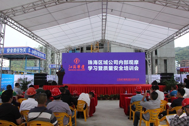 10月16日下午,珠海公司在晉和天慶花園二期項(xiàng)目部舉行內(nèi)部觀摩學(xué)習(xí)暨質(zhì)量安全培訓(xùn)會(huì)。珠海區(qū)域公司、重慶分公司各工程處、直管項(xiàng)目部項(xiàng)目經(jīng)理、技術(shù)、安全負(fù)責(zé)人80余人參加了培訓(xùn)會(huì)。