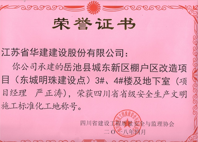 重慶分公司2項目獲評“四川省安全生產文明施工標準化工地” 時間:2018-04-20 3041 4月18日,重慶分公司項目創優再獲新成果,公司承建的岳池縣城東新區棚戶區改造項目(東城明珠建設點)3#、4#及地下室、官盛春天12#、13#樓被四川省建設工程質量安全與監理協會評為“四川省省級安全生產文明施工標準化工地”。至此,重慶分公司獲省級標化工地獎項已達3項。