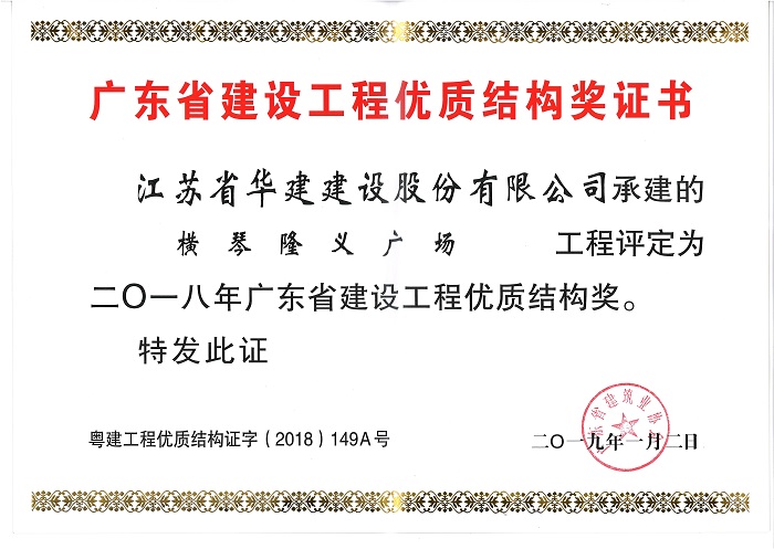 公司3個項目喜獲多項省級表彰 時間:2019-04-10 3588 近日,廣東省建筑業協會、廣東省建筑安全協會分別發文表彰了一批優質結構工程、綠色施工示范工程和安全文明工地,公司3個項目榮列榜單。其中,陽光馬德里、橫琴隆義廣場、華策國際大廈均被表彰為二〇一八年廣東省建設工程優質結構獎,華策國際大廈被授予廣東省建筑業綠色施工示范工程稱號,橫琴隆義廣場被評為2017年廣東省房屋市政工程安全生產文明施工示范工地。