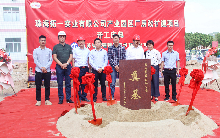 珠海拓一產業園區廠房改擴建項目舉行開工儀式 時間:2019-11-03 2553 11月2日,公司承建的珠海拓一實業有限公司產業園區廠房改擴建項目舉行隆重的開工儀式。 珠海拓一實業有限公司產業園區廠房改擴建項目,擴建項目建筑總面積為19088.9平方米,其中新一號廠房建筑面積為19050.68平方米(地上建筑面積為17019.75平方米,地下建筑面積為2030.93平方米);門衛室建筑面積為38.22平方米,工程暫定價約4600萬元,改建項目正在洽談中。