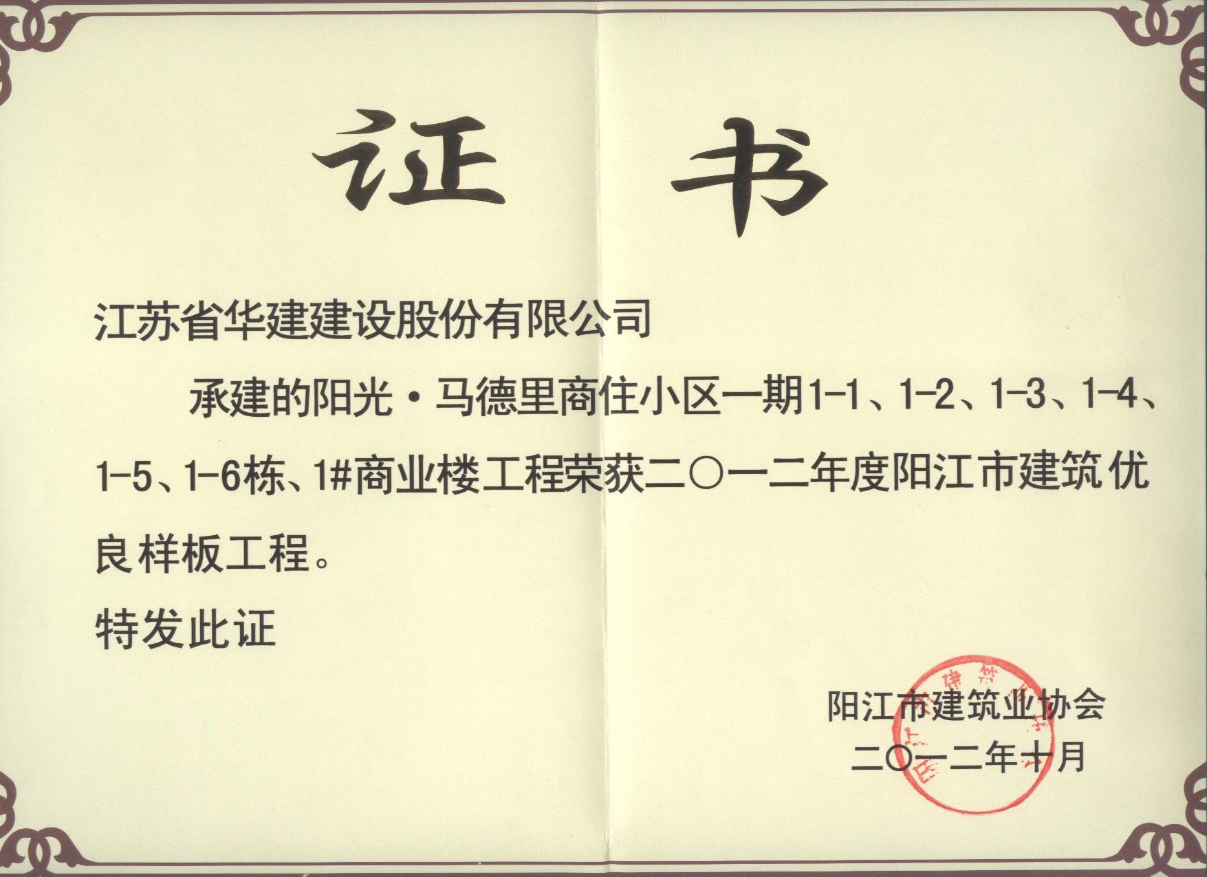 2012陽(yáng)江陽(yáng)光馬德里項(xiàng)目陽(yáng)江市優(yōu)良樣板工程