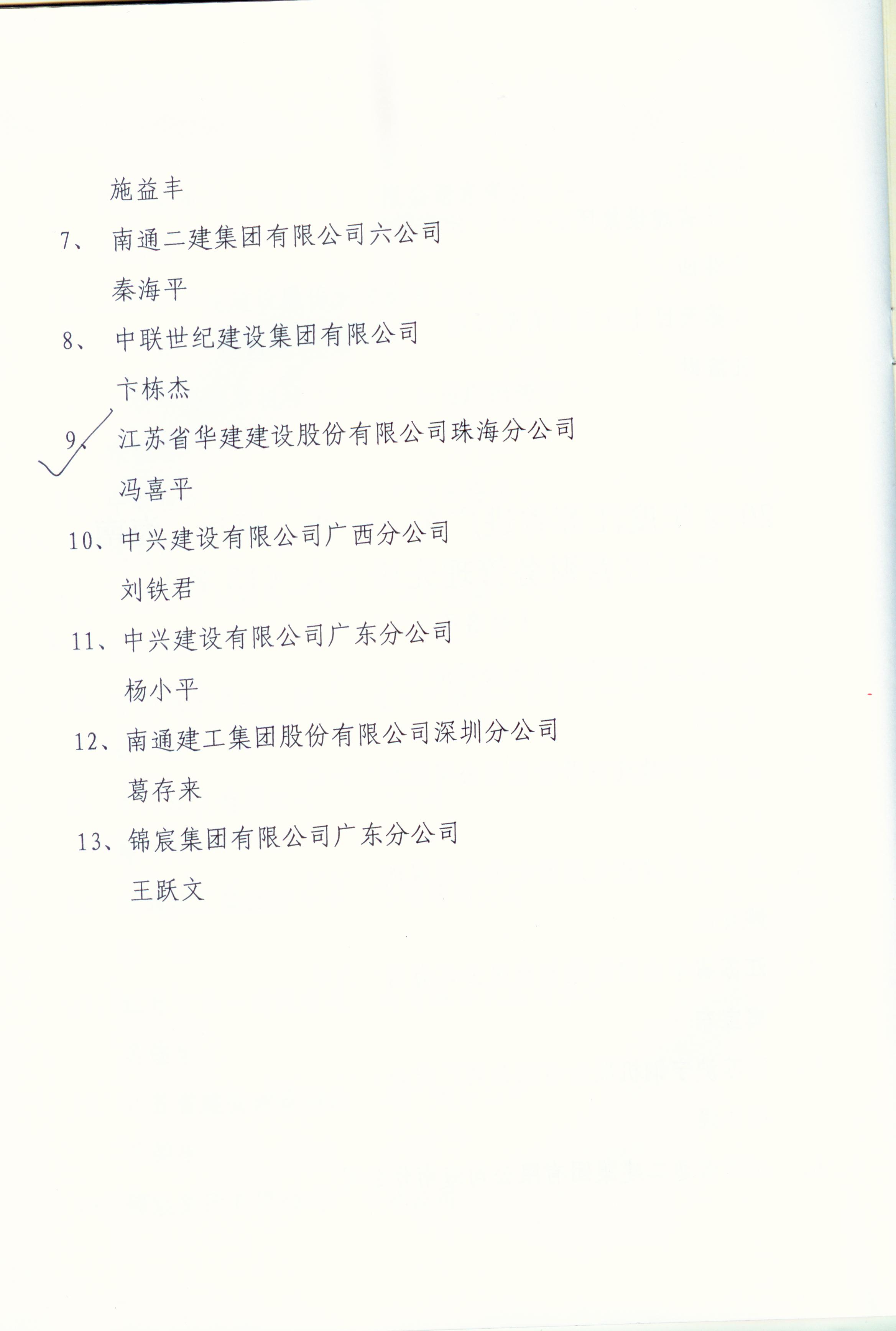 2012年江蘇進粵、桂、閩、瓊建筑施工先進企業、優秀企業經理、優秀建造師及經營財務管理、質量安全管理先進個人