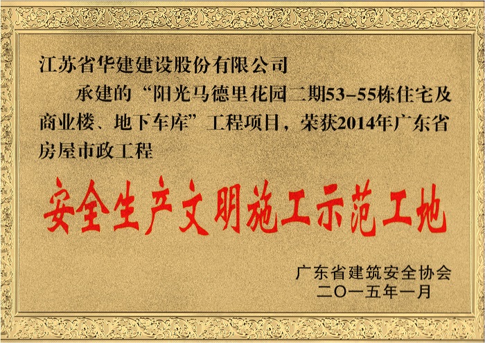 陽光馬德里二期工程榮獲2014年廣東省房屋市政工程安全生產文明施工示范工地