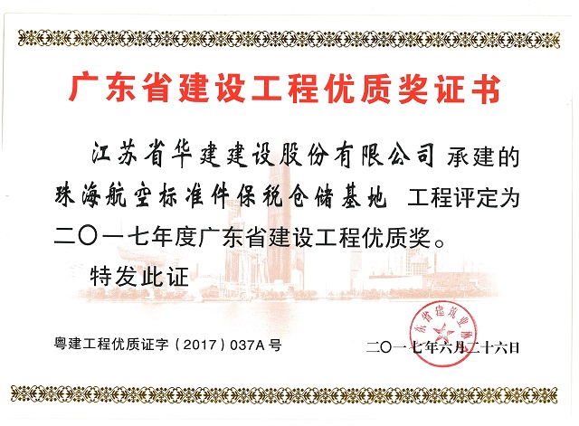 珠海航空標準件保稅倉儲基地 2017年度廣東省建設工程優質獎