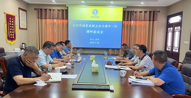 7月26日,揚州市國資委副主任方建中、產權處陳修銘一行來岳調研。揚州建工控股集團黨委委員、...