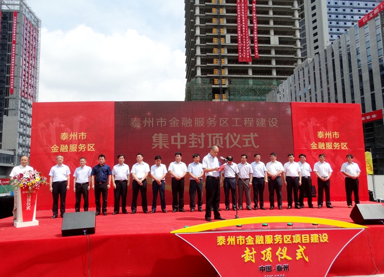 8月8日上午9時58分,泰州金融服務(wù)區(qū)工地鞭炮齊鳴,由江蘇華建承建的“蘇中第一高樓”:高達...