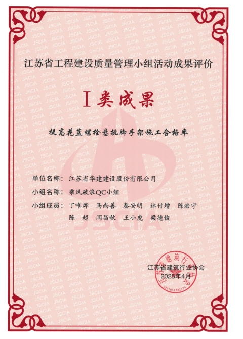 近日,江蘇省建筑行業協會發布了2025年江蘇省工程建設質量管理小組活動成果評價結果,公司報...