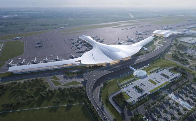 4月2日上午,揚州泰州國際機場二期擴建工程航站樓舉行主體封頂儀式,江蘇華建黨委委員、副總經...