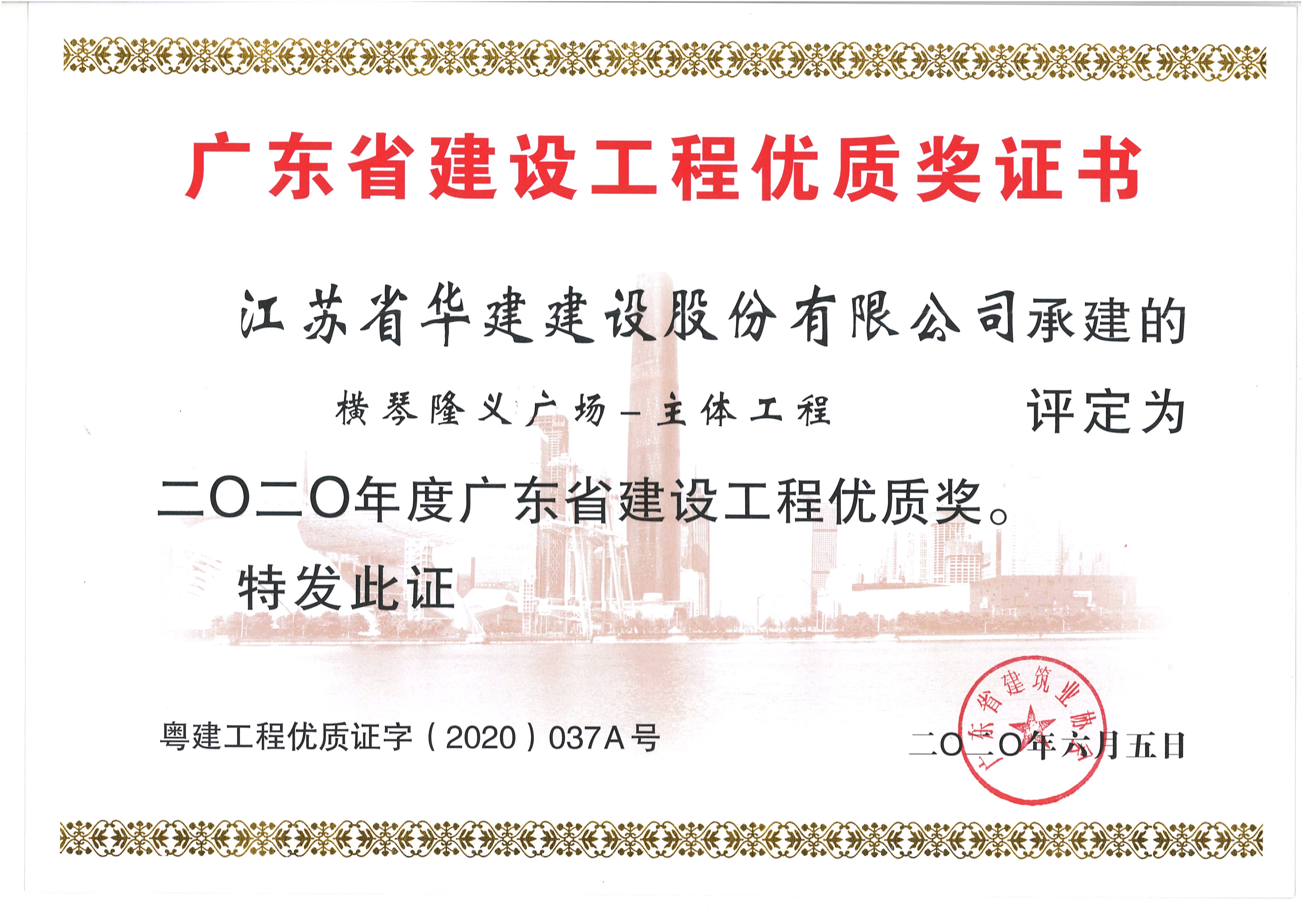 橫琴隆義廣場-主體工程獲2020年度廣東省建設工程優質獎