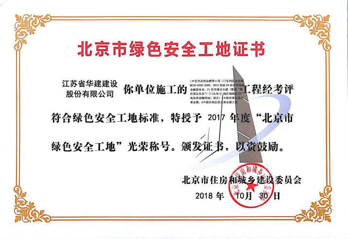 北京公司兩項工程獲北京市綠色安全工地 時間:2018-11-11 3685 近日,從北京市住房和城鄉建設委員會傳來喜訊,由北京公司總包承建的1#住宅及商業樓等4項(1#住宅及商業樓、2#住宅及商業樓)和1#住宅及商業樓等4項(3#限價商品房及商業樓、8#限價商品房及商業樓)兩個標段項目榮獲 “北京市綠色安全工地”光榮稱號,并獲頒證書。