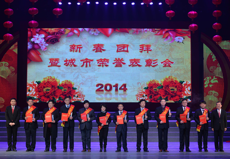 在1月12日晚揚州市委、市政府召開的2014新春團拜暨城市榮譽表彰會上,公司副董事長、總經(jīng)理宗有農(nóng)當(dāng)選為“揚州市十大功臣”,揚州市委書記謝正義親自為宗有農(nóng)總經(jīng)理頒獎。