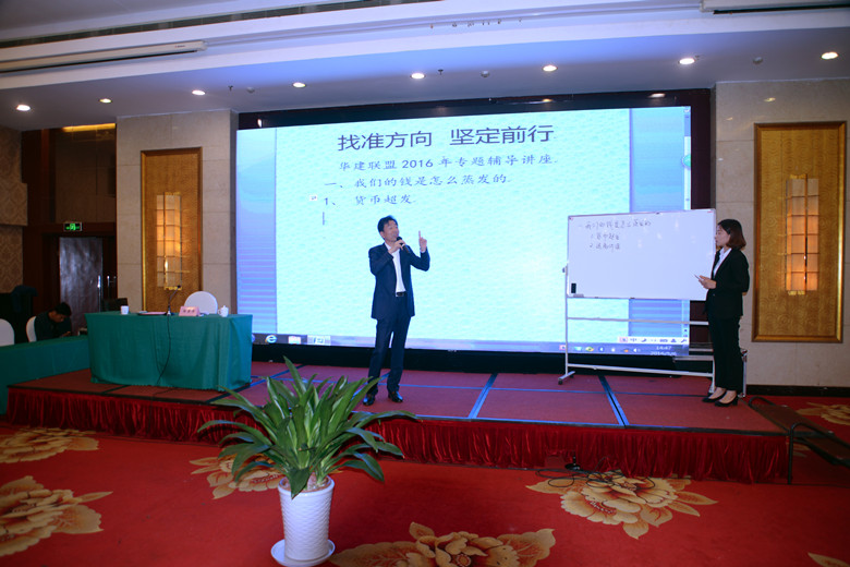 陸主席從過去建筑行業(yè)是平面思維,解的是一元一次方程,現(xiàn)在是立體思維,解的是三元三次方程引入,從貨幣超發(fā)、遠(yuǎn)離價值、抄底三個方面首先說明我們的錢是怎么蒸發(fā)的,從平民滅于P2P、中產(chǎn)滅于股市、土豪滅于信托高利債三個層次分析了錢沒有了的三個通道。他說,過去是產(chǎn)品時代,現(xiàn)在是服務(wù)時代乃至是生活時代,以“九維”思維才能跟上時代的腳步。他從時間、空間、角度詳細(xì)介紹了“九維”思維,“時間”是指過去、現(xiàn)在、未來,空間是指商業(yè)、事業(yè)、神業(yè),角度是指我、你、他。未來決定過去和現(xiàn)在,懂得商業(yè)的人才懂得道,商業(yè)就是交換,透過商業(yè)上升到事業(yè),進(jìn)而達(dá)到神圣的事業(yè)。通過九維,我們才能明白當(dāng)下經(jīng)商需要的境界。當(dāng)前的行業(yè)勢已經(jīng)介于C點與D點之間,開始下坡路,產(chǎn)品勢必須有超前意識才有競爭力,團(tuán)隊勢必須解決動力和阻力的問題,動力就是食、性、愛,阻力就是恐懼和惰性,處于上升勢的團(tuán)隊才有戰(zhàn)斗力。他強調(diào)說,聯(lián)盟合作必須遵循三個法則:魚缸法則、空靈法則、同頻法則。魚缸法則就是要擴(kuò)大生存空間,空靈法則就是在新常態(tài)新業(yè)態(tài)下要有新的玩法,做好“四個刪除”:刪除混濁進(jìn)入純潔、刪除外圍進(jìn)入核心、刪除腦進(jìn)入心、刪除疲憊進(jìn)入放松,同頻法則就是要境界提升、思維提升、價值提升才能達(dá)到同頻。陸主席說,文化絕對認(rèn)同、能量必須匹配、持續(xù)智慧成長、走向合伙創(chuàng)業(yè),是聯(lián)盟合作的基礎(chǔ)。他認(rèn)為,民營企業(yè)怎么干就是要不設(shè)限、無邊無際,三大要素就是:你干的事是剛需的、供應(yīng)鏈金融、聯(lián)盟。當(dāng)前信用缺失的社會更需要契約精神。陸主席啟發(fā)大家,學(xué)習(xí)的意義是引發(fā)新的思維和方向,并讓自己深度思考和覺悟,進(jìn)而改變自己未來的命運。學(xué)習(xí)的通道是讀萬卷書、行萬里路、高人指路、閱人無數(shù)、自己頓悟,最終都不如直接進(jìn)入,即從體驗入、與實相合。他指出,民營企業(yè)家要為真人、做正事、會造場。當(dāng)下經(jīng)商(過渡時期)要經(jīng)歷三個時代:審判時代(2014—2016年)、覺醒時代(2017—2019年)、覺悟時代(2020—2022年)。時間是個神,能解決一切問題,罩見未來十年,是立體的動態(tài)的。早點覺醒,知道風(fēng)口在哪,就知道未來怎么干。時代就像潮汐一樣有高潮有低潮,有堅定之心、感恩之心、成長之心、擔(dān)當(dāng)之心就能贏得未來。貴族就是要有自由的靈魂、文化教養(yǎng)和社會擔(dān)當(dāng)。陸主席三元三次方程“九維”的精彩講座打開了企業(yè)家的思維,為開創(chuàng)未來奠定了堅實的思想基礎(chǔ)。
