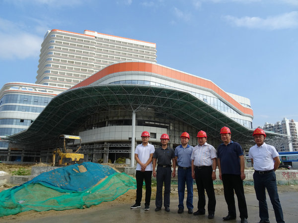 在公司承建的三亞婦幼保健院和華盛中央公園施工現場,王慶山主任與項目管理人員一一握手,向大家表示親切問候。在陪同人員引導下,他饒有興致地邊走邊看,聽取項目負責人對工程特點、工程進展、工程用材等方面的情況匯報,不時點頭稱贊施工人員的工藝水平和施工技藝,并與項目部主要管理班子親切合影。