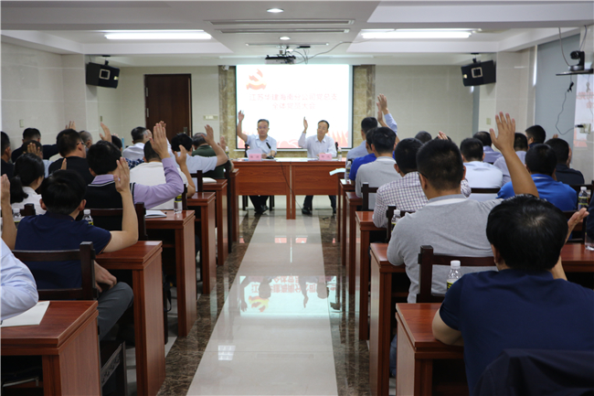 黨員大會上,海南分公司黨總支書記陸俊代表海南分公司黨總支委員會向大會作了題為“圍繞經濟抓黨建、抓好黨建促經濟”的工作報告。報告從牢固樹立政治意識,切實加強黨員學習教育;大力加強組織建設,切實發揮黨組織戰斗堡壘作用;持續開展黨風廉政建設,自覺踐行中央八項規定;深入開展黨群共建活動,凝心聚力促進公司穩定發展四個方面,回顧了自2016年12月8日換屆以來,海南分公司黨總支在江蘇駐瓊建工企業黨委和公司總部黨委的正確領導下,緊緊圍繞“服務經濟發展、促進和諧穩定”的主線,認真學習貫徹黨的十八大以來黨中央的新思想、新觀點、新部署和習近平總書記系列重要講話精神,以開展“創先爭優”、“兩學一做”和“不忘初心,牢記使命”主題教育等活動為載體,不斷加強黨的思想、組織、作風和制度建設,為江蘇華建海南分公司做強做優做大,實現公司健康穩定發展提供了堅強的思想、政治和組織保證。